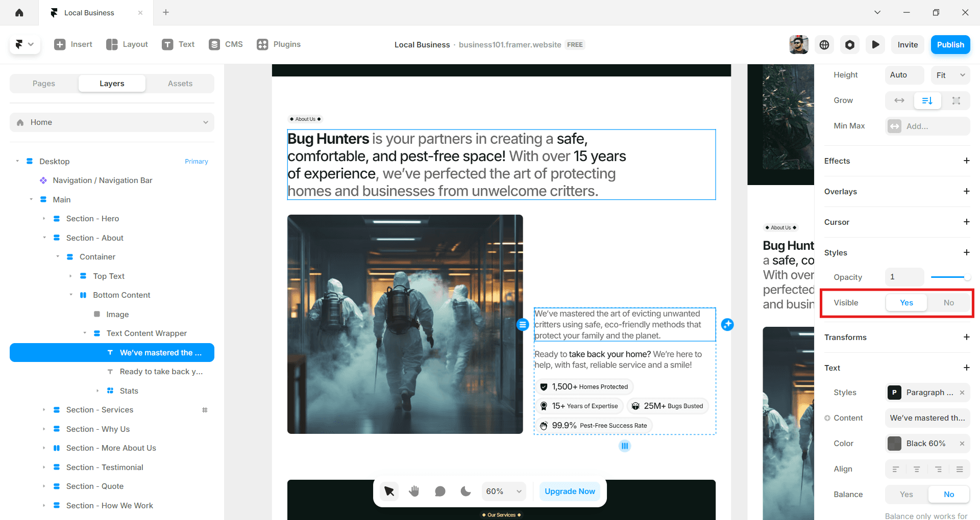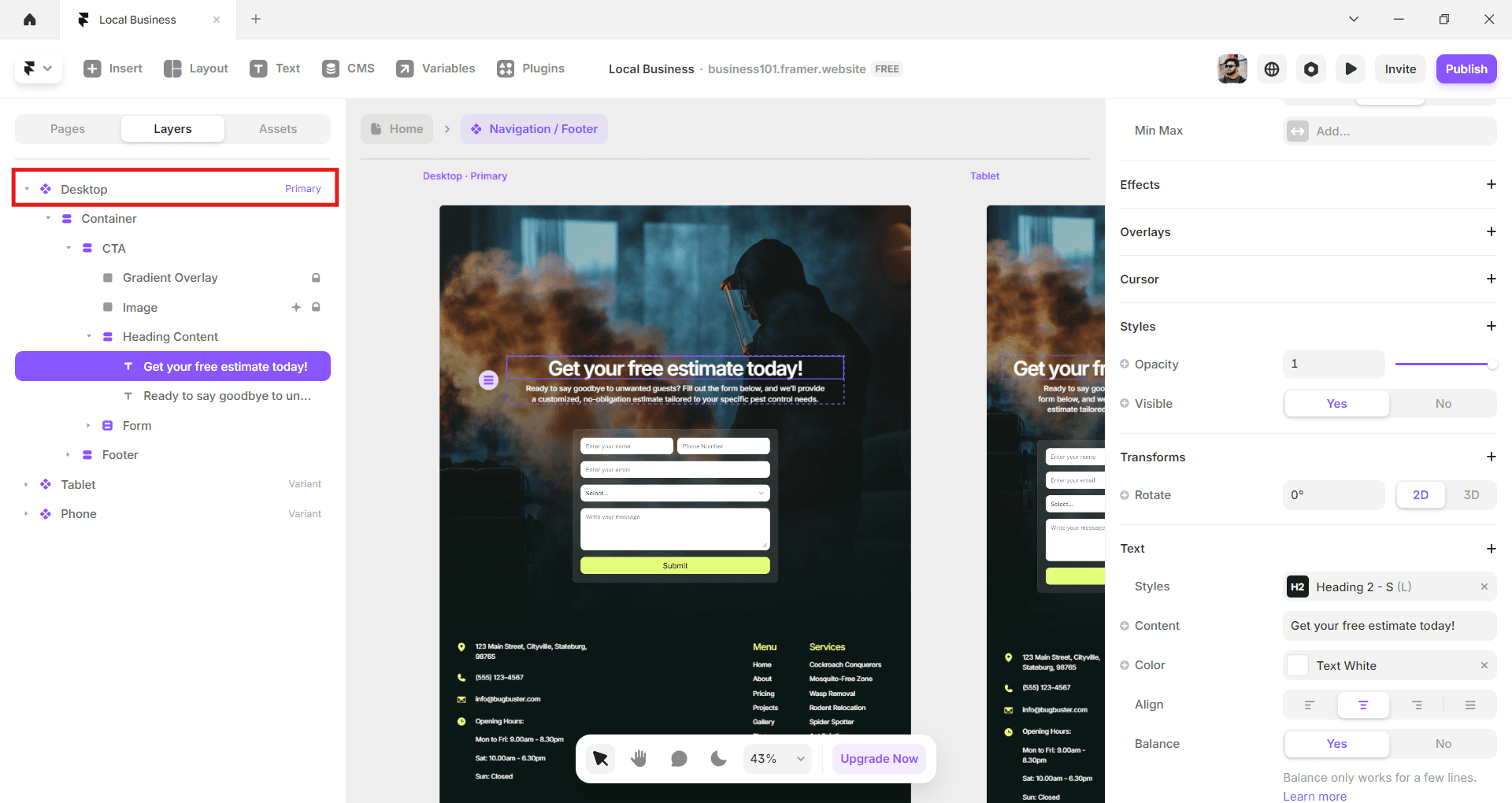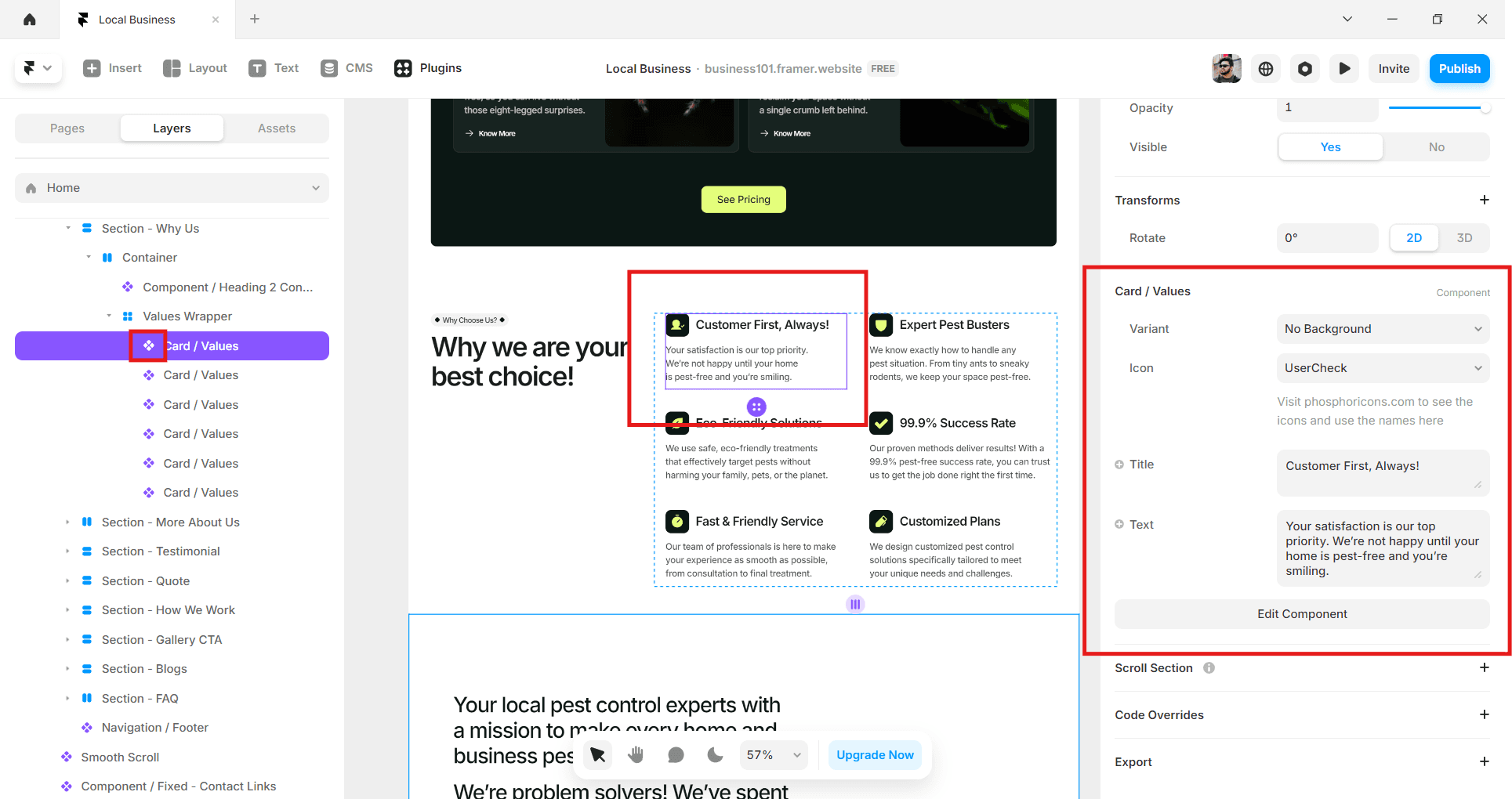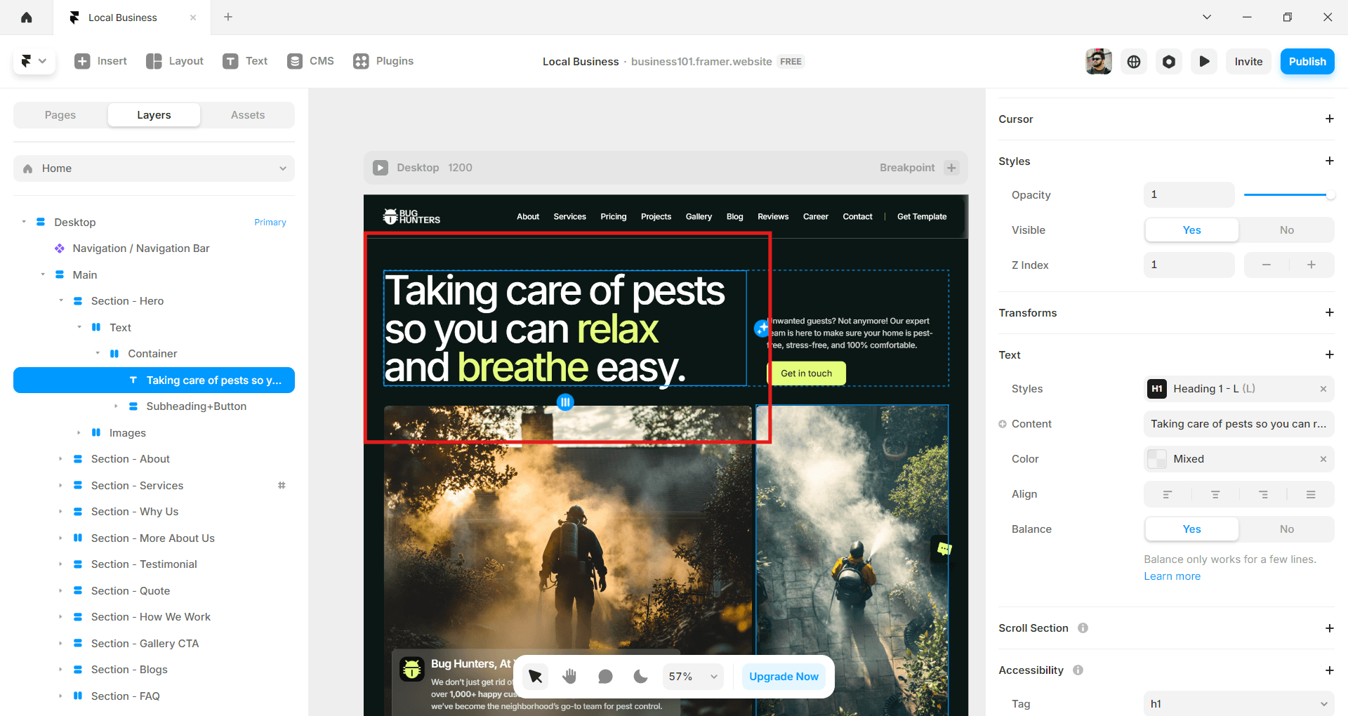This Framer template is designed for the businesses like pest control, consultancy agency, cleaner, agency, moving companies, landscaping, plumbing, electrician, roofing, HVAC, painting, car repair, repair, home renovation, lawn care, handyman service etc. Primarily, it is designed based on the pest control service. But you can adjust the contents according to your business.